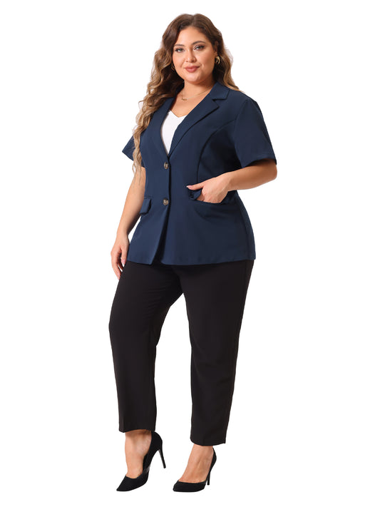 Women Plus Size Casual Blazers Short Sleeve Notched Lapel Button Work Office Blazer Suit Jacket