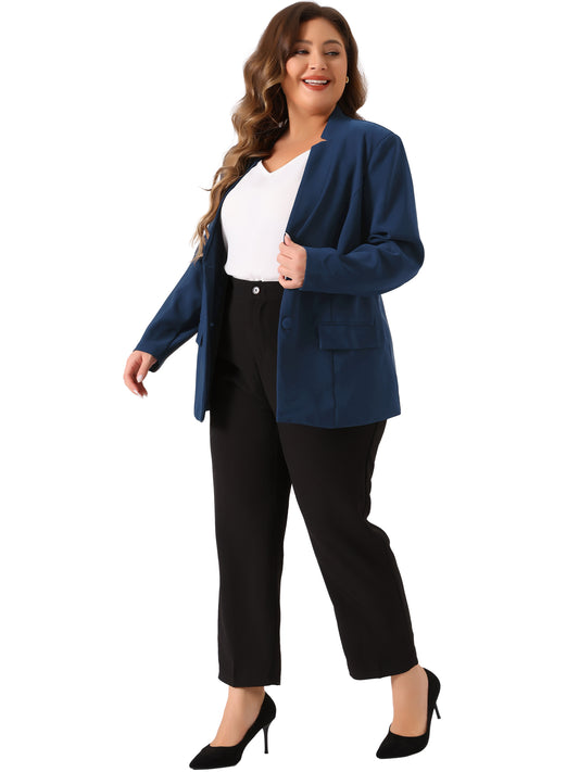 Women Plus Size Business Suit Blazer Button Long Sleeve Office Work Blazer Jacket