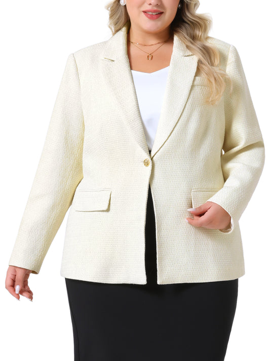 Women Plus Size Tweed Blazers Casual Open Front Long Sleeve Work Office Suits Blazer Jacket