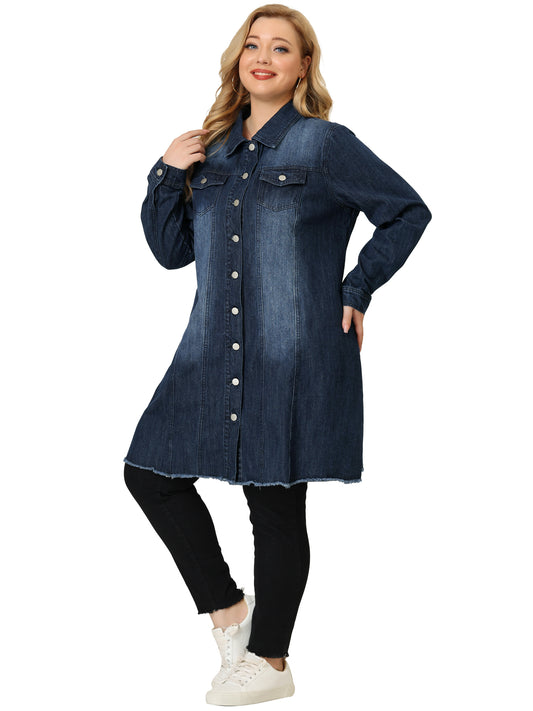 Women's Plus Size Denim Jacket Casual Long Distressed Button Up Pockets Jean Jackets