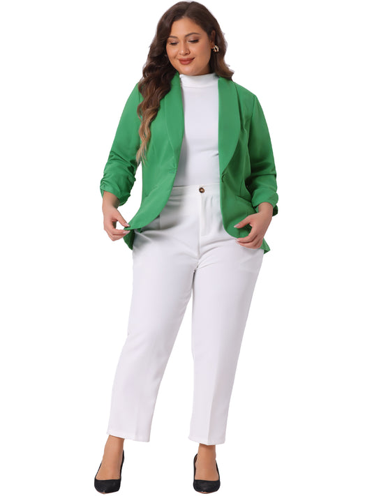 Women Plus Size Blazer 3/4 Ruched Sleeve Open Front Lightweight Work Office Suit Jacket