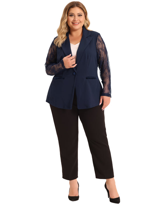 Women Plus Size Blazers Work Jackets Notch Lapel Lace Front Blazer Jackets