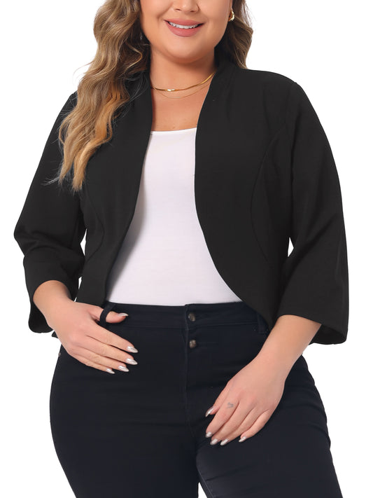 Women Plus Size Blazers Open Front 3/4 Sleeve Cardigan Work Office Jacket Suit Blazer