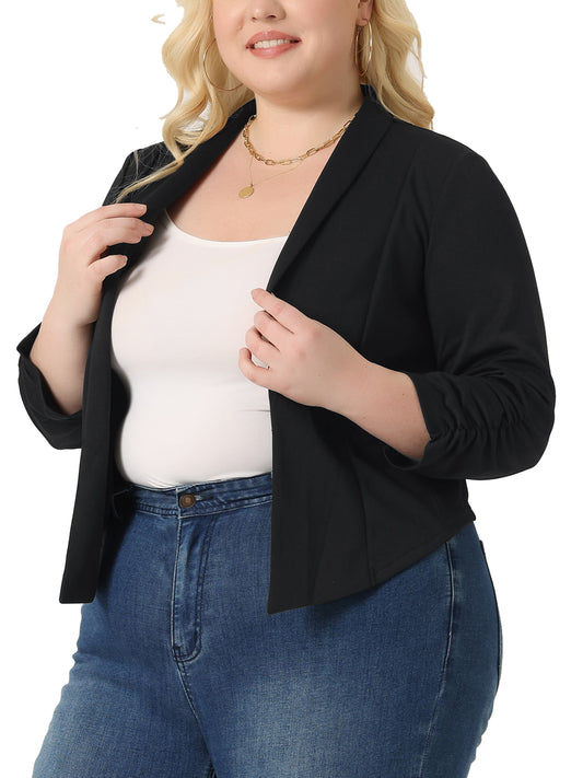 Women's Plus Size 3/4 Ruched Sleeve Lightweight Work Office Blazer Jacket