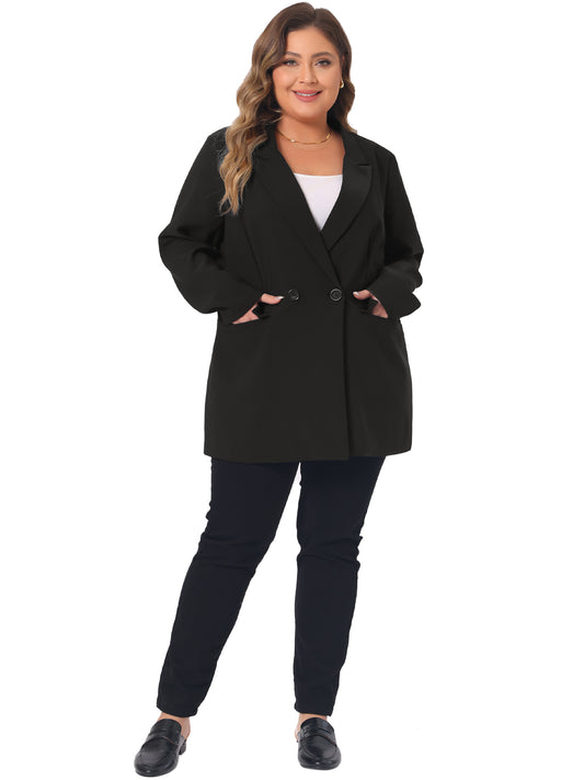 Women Plus Size Blazers Lapel Button with Pocket Office Work Jackets Long Blazer