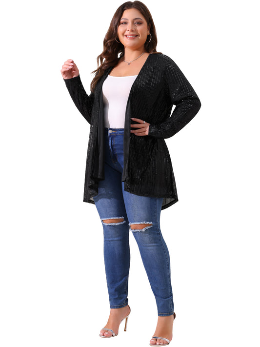 Women Plus Size Sequin Cardigans Sparkly Long Sleeve Open Front Shimmer Glitter Jackets