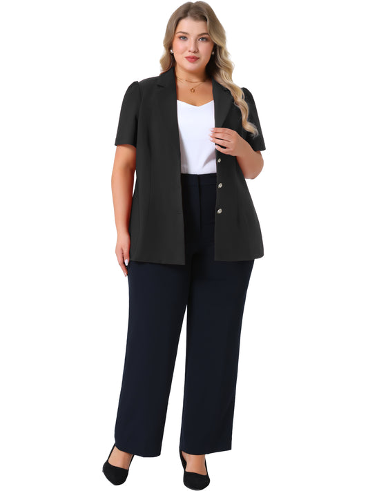 Women Plus Size Blazers Short Puff Sleeve Notched Lapel Single Breasted Office Blazer Jackets