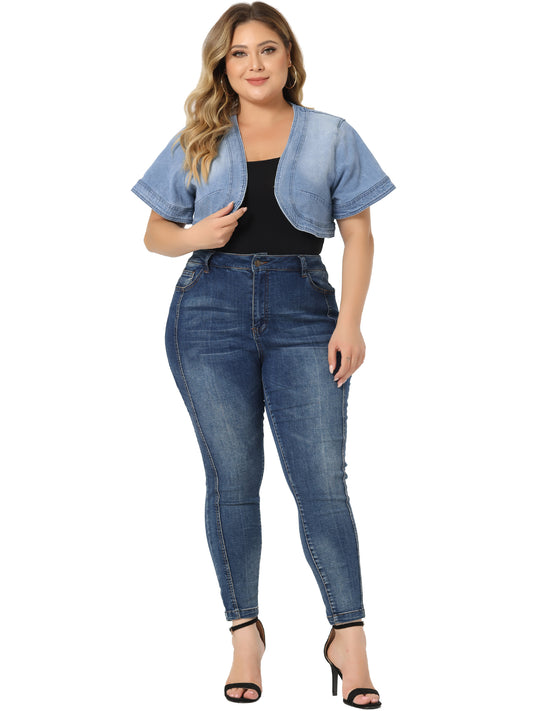 Women Plus Size Denim Jackets Cardigan Casual Short Crop Jean Jacket Shrug