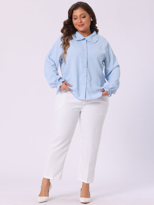 Women's Plus Size Top Peter Pan Long Sleeve Button Down Work Chiffon Shirt