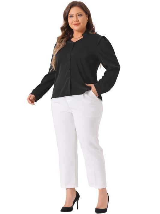 Women Plus Size Long Sleeve Button Down Shirt Top