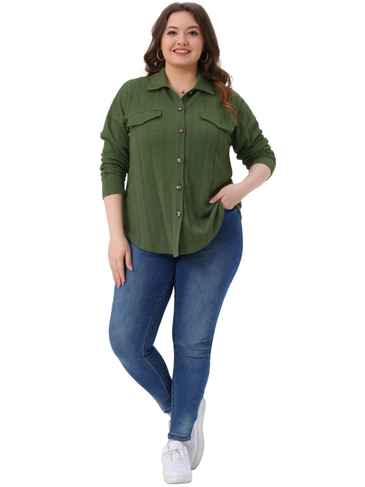 Women Plus Size Knit Shacket Jacket Casual Long Sleeve Lapel Button Down Overshirt Top