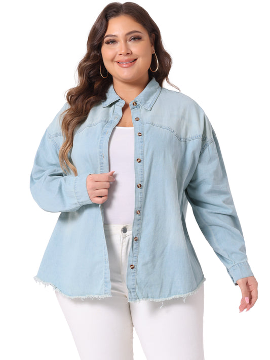 Women's Plus Size Shirts Button Down Shirt Work Cotton Casual Denim Jackets