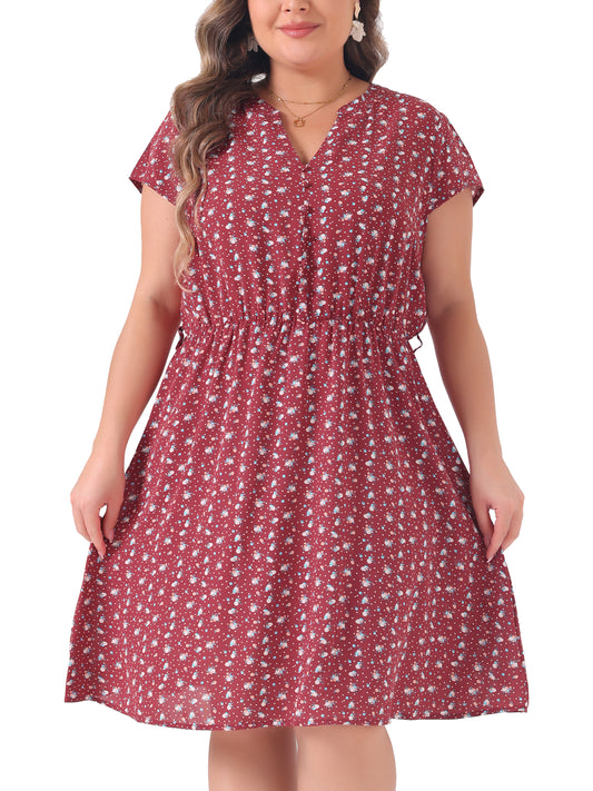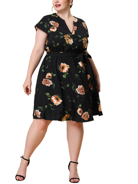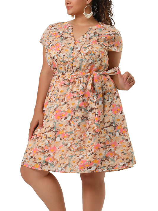Women's Plus Size V Neck Belted Summer Floral Dresses