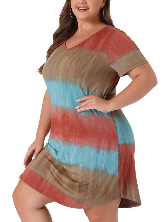 Women Plus Size Tie Dye Summer V Neck Short Sleeve Casual Dresses