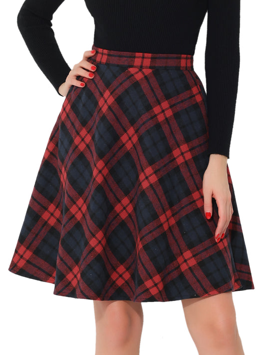 Women's Plaids Tartan Elastic Waist Knee Length A-Line Skirt
