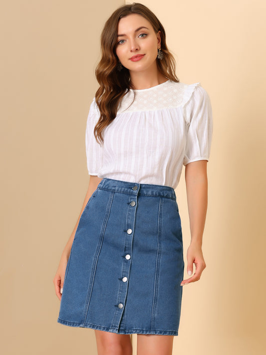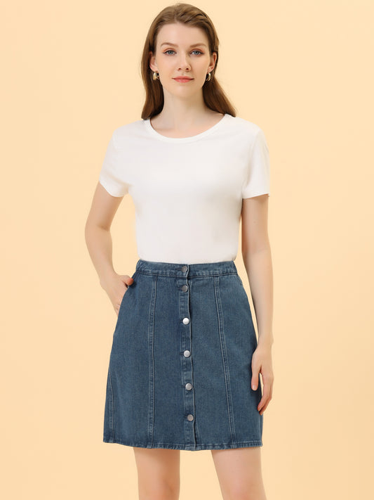 Women's Denim Skirts Summer Casual A-Line Short Button Down Jean Skirt (Available in Plus Size)