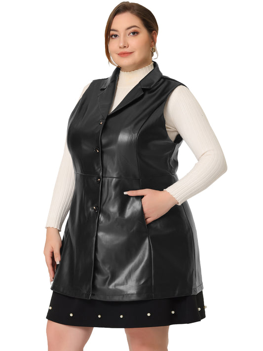 Women Plus Size Vests Sleeveless Lapel Casual PU Jackets Vest