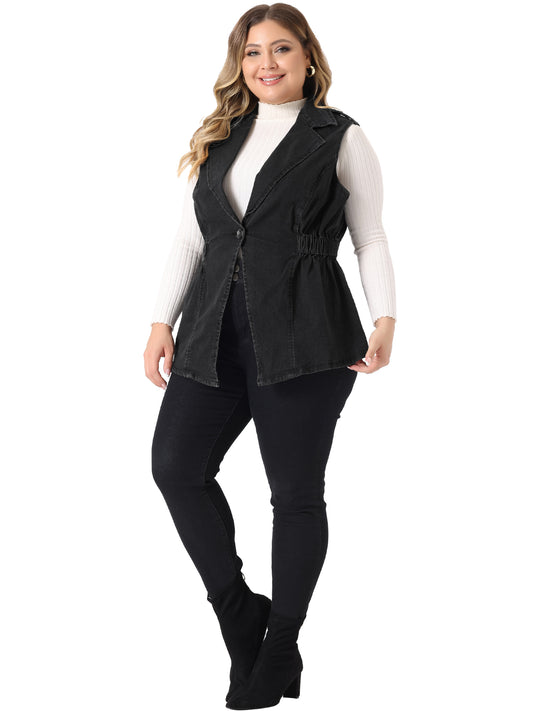 Women's Plus Size Denim Vest Sleeveless Lapel Button Elastic Waist Casual Denim Jackets Vest