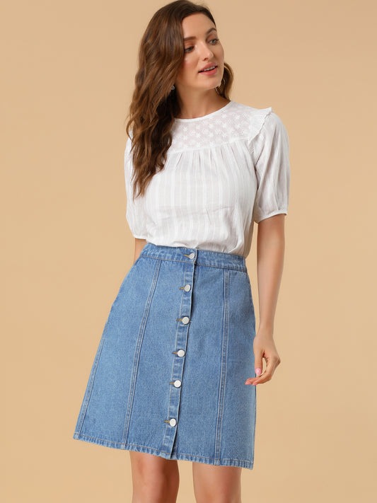 Women's Denim Skirts Summer Casual A-Line Short Button Down Jean Skirt (Available in Plus Size)