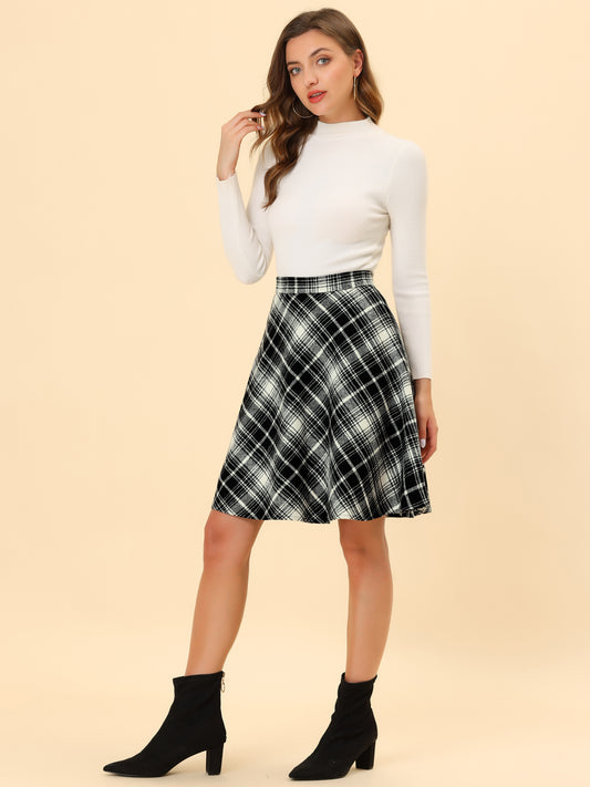Women's Plaids Tartan Elastic Waist Knee Length A-Line Skirt (Available in Plus Size)
