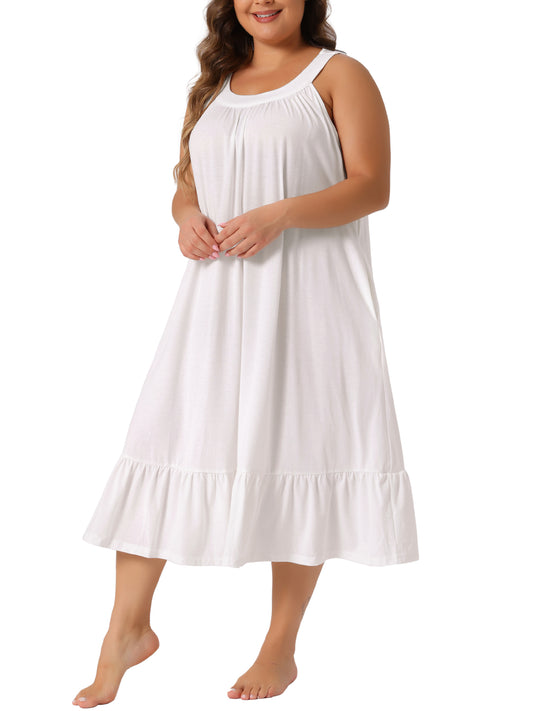 Women's Plus Size Nightgown Tank Sleeveless Sleepwear Wide Strap Chemise Pleated Nightdress with Pockets