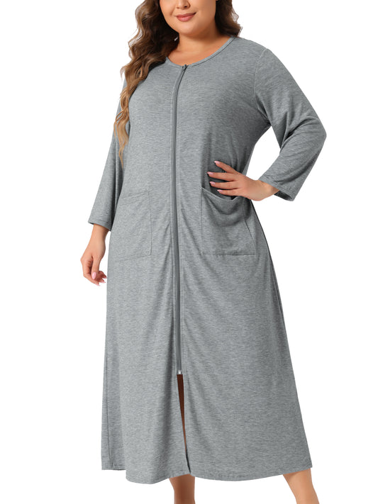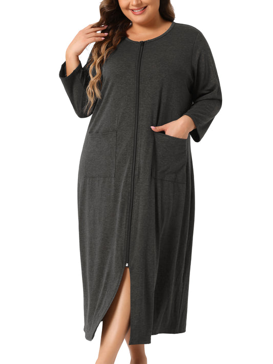 Women Plus Size Sleepwear Zipper Front House Coat Short Sleeves Robe Bathrobes Short Nightgown with Pockets