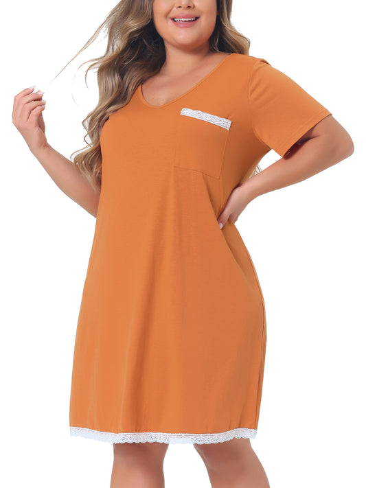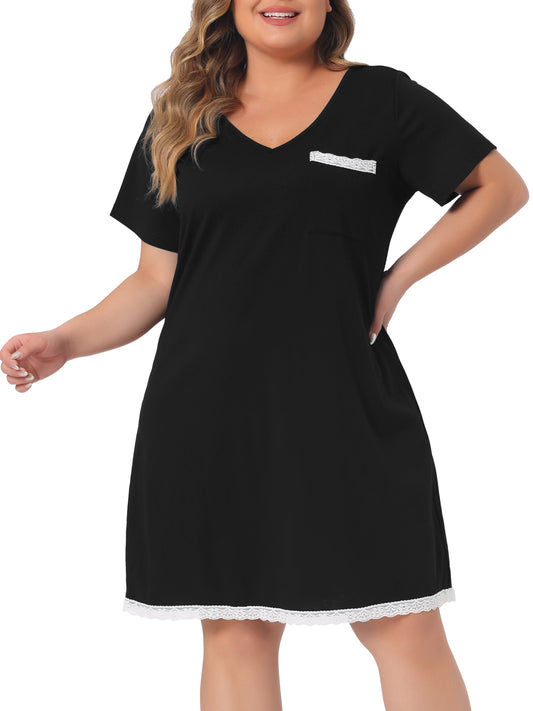 Women Plus Size Nightgown Sleepwear Sleepshirt Short Sleeve Lace Trim Pajama Nightshirt