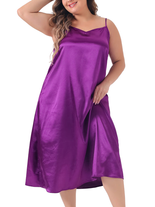 Women Plus Size Nightgown V Neck Satin Pajamas Sleeveless Cami Slip Dress Sleepwear