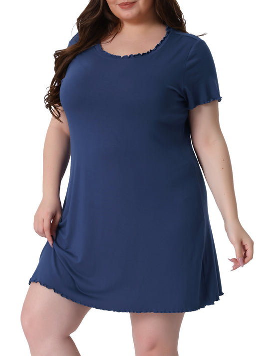 Women Plus Size Nightgowns Short Sleeve Ruffle Sleepwear Casual Sleepshirts Loose Pajama Dress