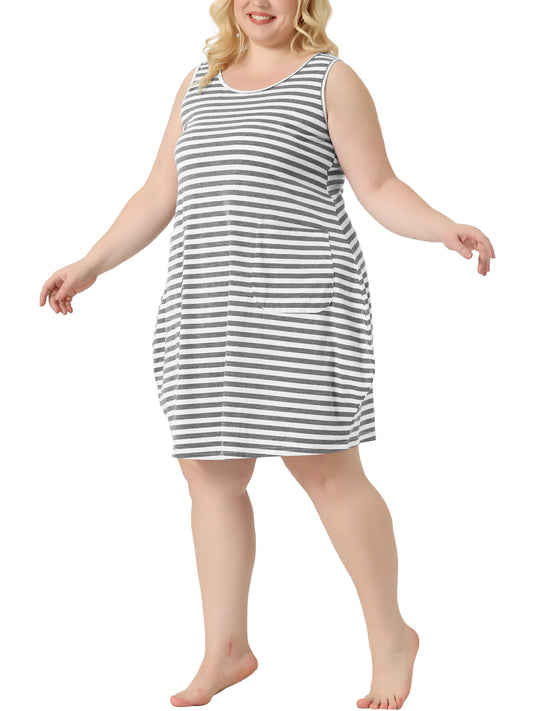 Women Plus Size Sleeveless Nightgowns Pajama Nightshirt Sleepdress with Pockets
