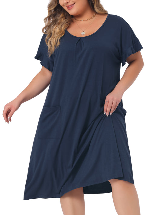 Women Plus Size Nightgowns Pajama Short Sleeve Round Neck Dress with Pockets