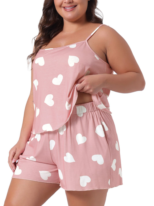 Women Plus Size Pajamas Strawberry Pattern Sleepwear Cami Shorts Set Cute Nightgown