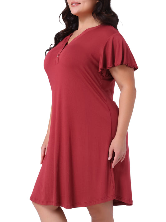Women Plus Size Pajamas V Neck Nightshirt Ruffle Short Sleeve Loungewear Nightgowns