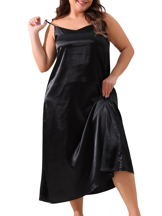 Women Plus Size Nightgown V Neck Satin Pajamas Sleeveless Cami Slip Dress Sleepwear