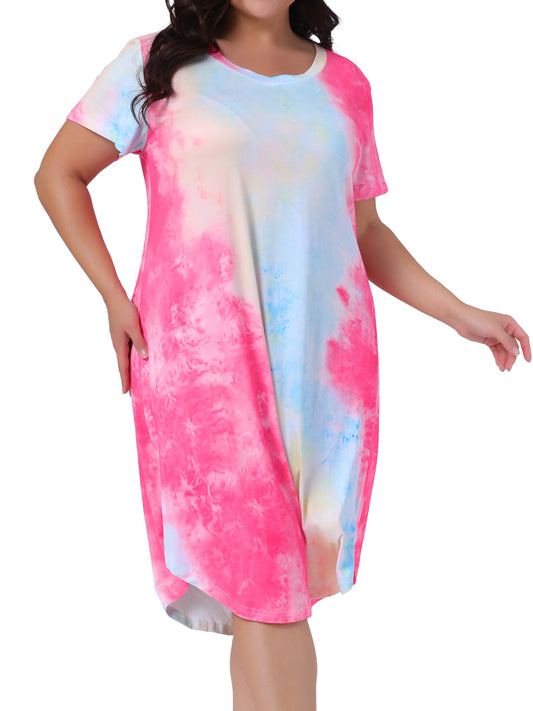Women Plus Size Nightgowns V Neck Pajamas Sleepwear Tie Dye Short Sleeve Sleepdress