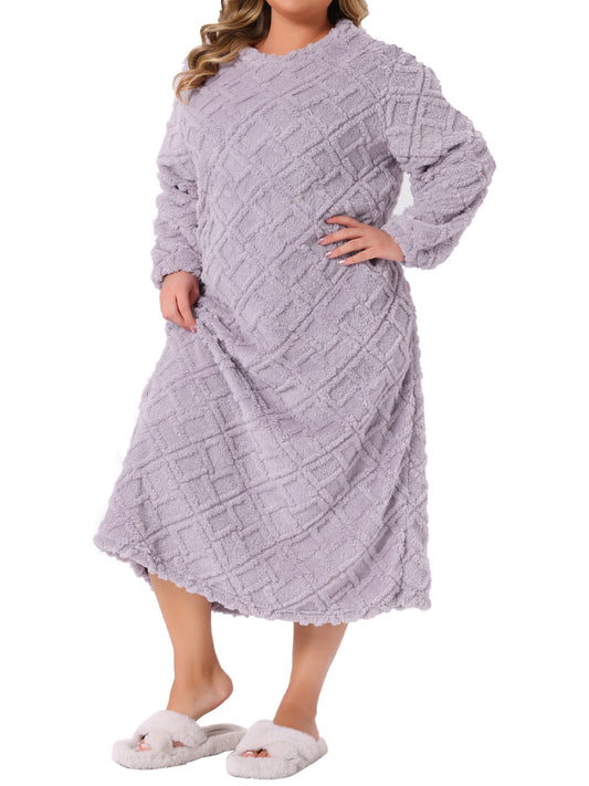 Women's Plus Size Long Sleeve Pajama Dress Fuzzy Loungewear Loose Long Nightgowns