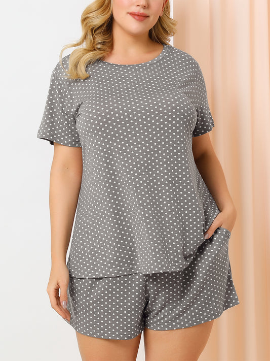 Women's Plus Size Sleepwear Pajamas Sets Short Sleeve Shirt and Shorts with Pockets