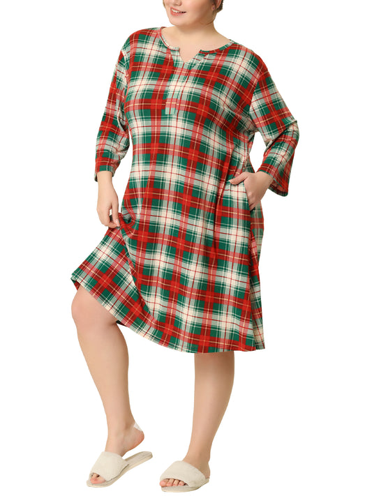 Women Plus Size Nightgown Plaid V Neck Lounge Sleep Dress Nightgowns