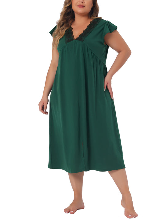 Women's Plus Size Nightgown Sleepwear Lace V Neck Front Slits Nightie Short Sleeves Nightshirt