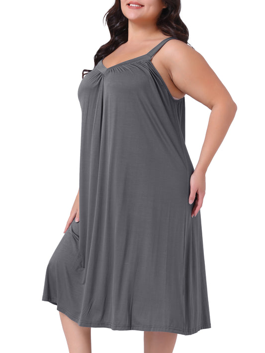 Women's Plus Size Nightgown Spaghetti Strap V Neck Sleeveless Sleepwear Chemise Nightdress