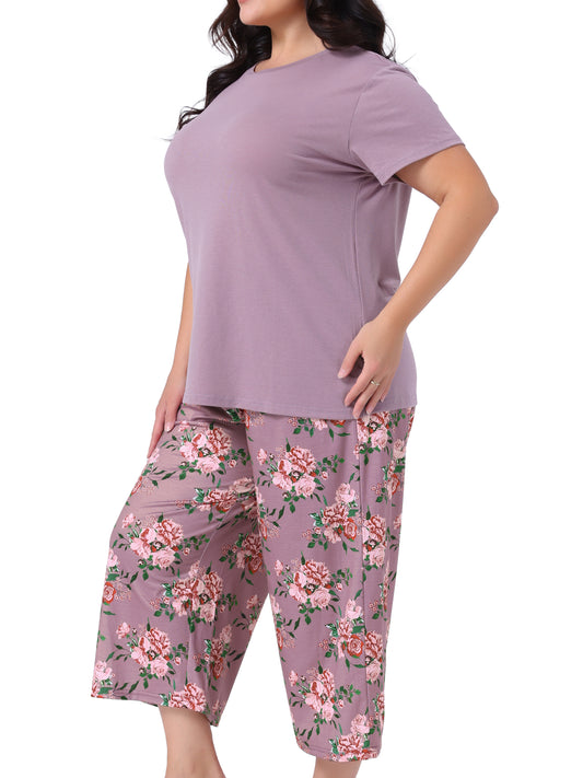 Women's Plus Size Short Sleeve Tops with Capri Pants Two-Piece Pajamas Set