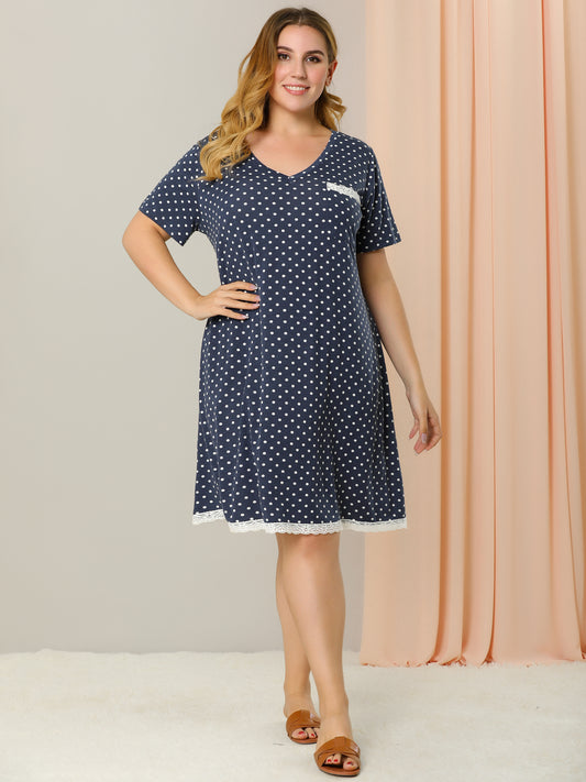 Women's Plus Size Nightgown Sleepwear Sleepshirt Short Sleeve Lace Trim Nightshirt Pajama Dress