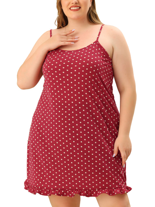 Women Plus Size Nightgown Sleeveless Sleepwear Polka Dots Ruffle Hem Cami Nightshirt