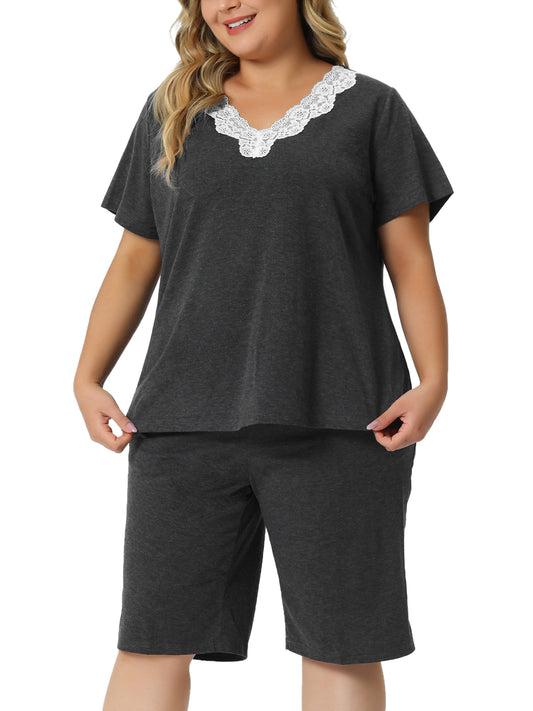 Women Plus Size Pajamas Set Short Sleeve Top and Pants Sleepwear Pajamas Lounge Set
