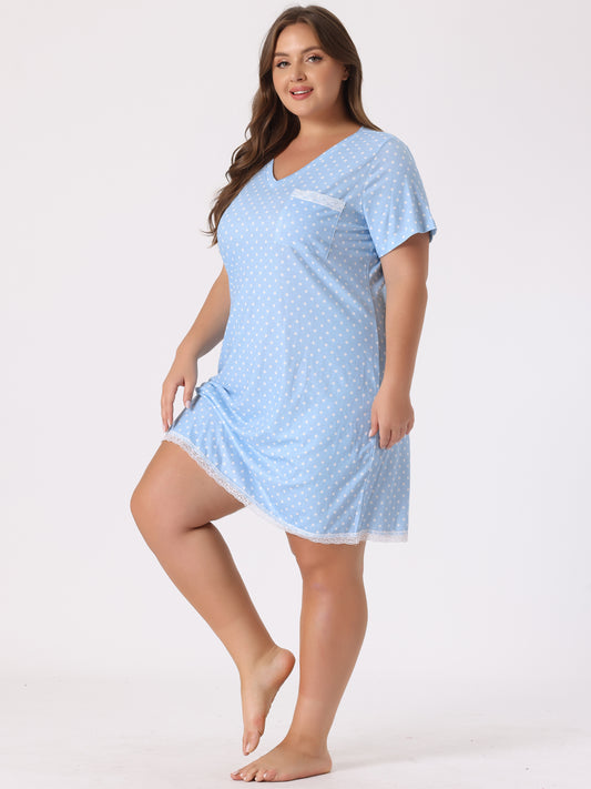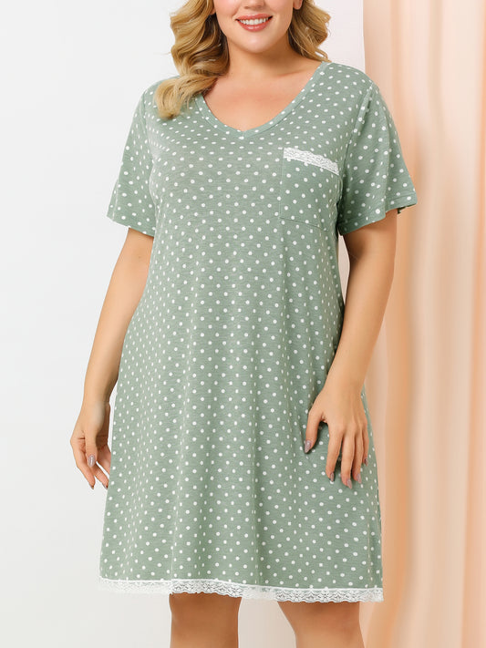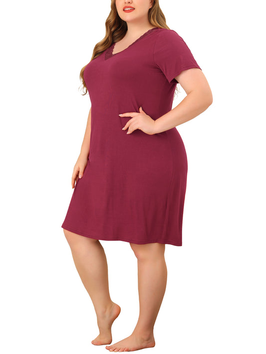 Women Plus Size Nightgowns Lace V Neck Short Sleeve Loungewear Sleepwear Dress