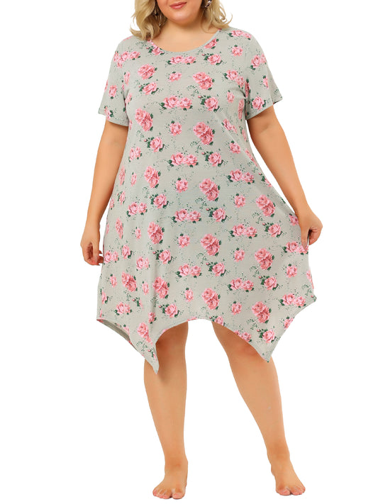 Women Plus Size Nightgowns Rose Floral Nightshirt Sleepwear Sleepdress