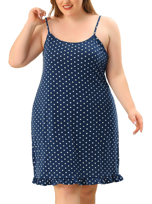 Women Plus Size Nightgown Sleeveless Sleepwear Polka Dots Ruffle Hem Cami Nightshirt
