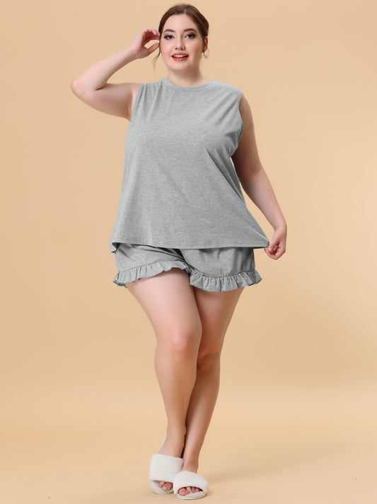 Women Plus Size Pajamas Set Ruffle Knit Sleeveless Tank Top 2 Piece PJ Sets Loungewear