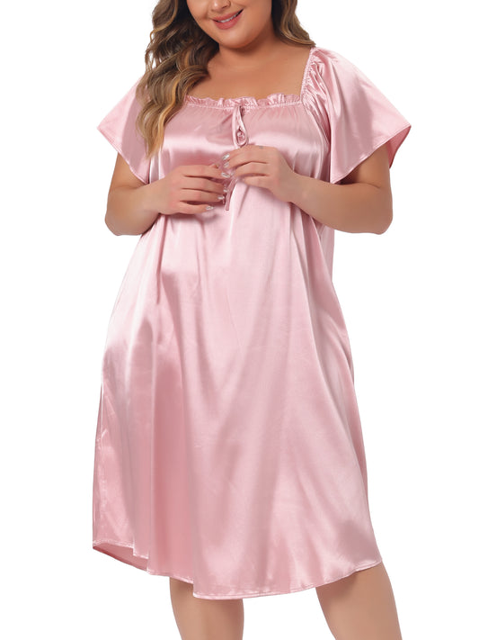 Women Plus Size Satin Silk Nightgown Pleated Loose Sleepwear Sleep Dress