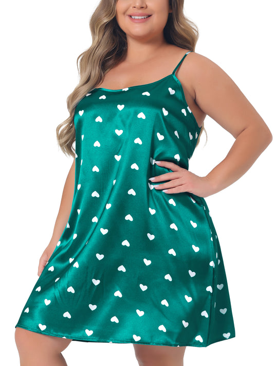 Women Plus Size Nightgown Camisole Sleeveles Heart Print Lingerie Dress Sleepwear